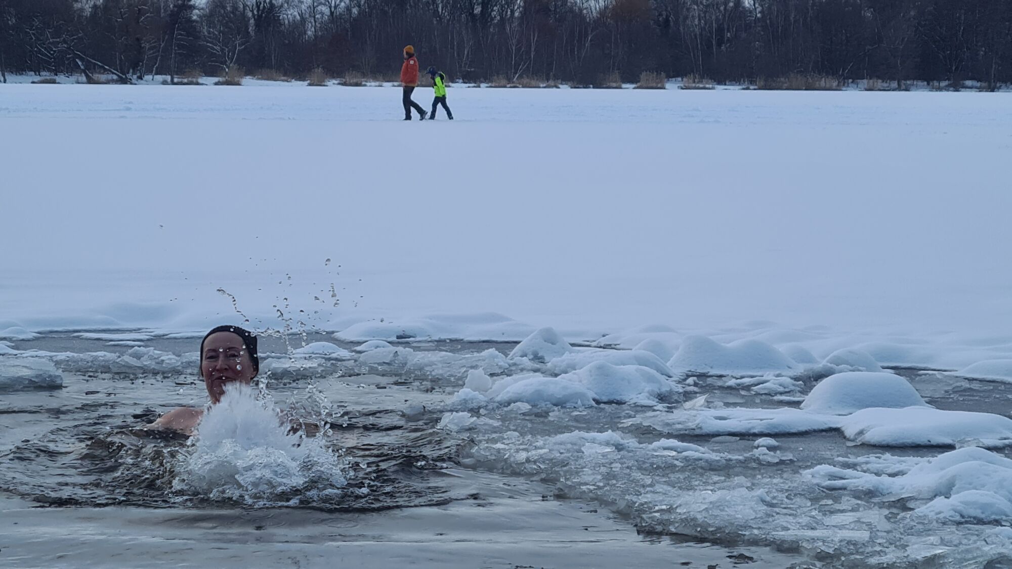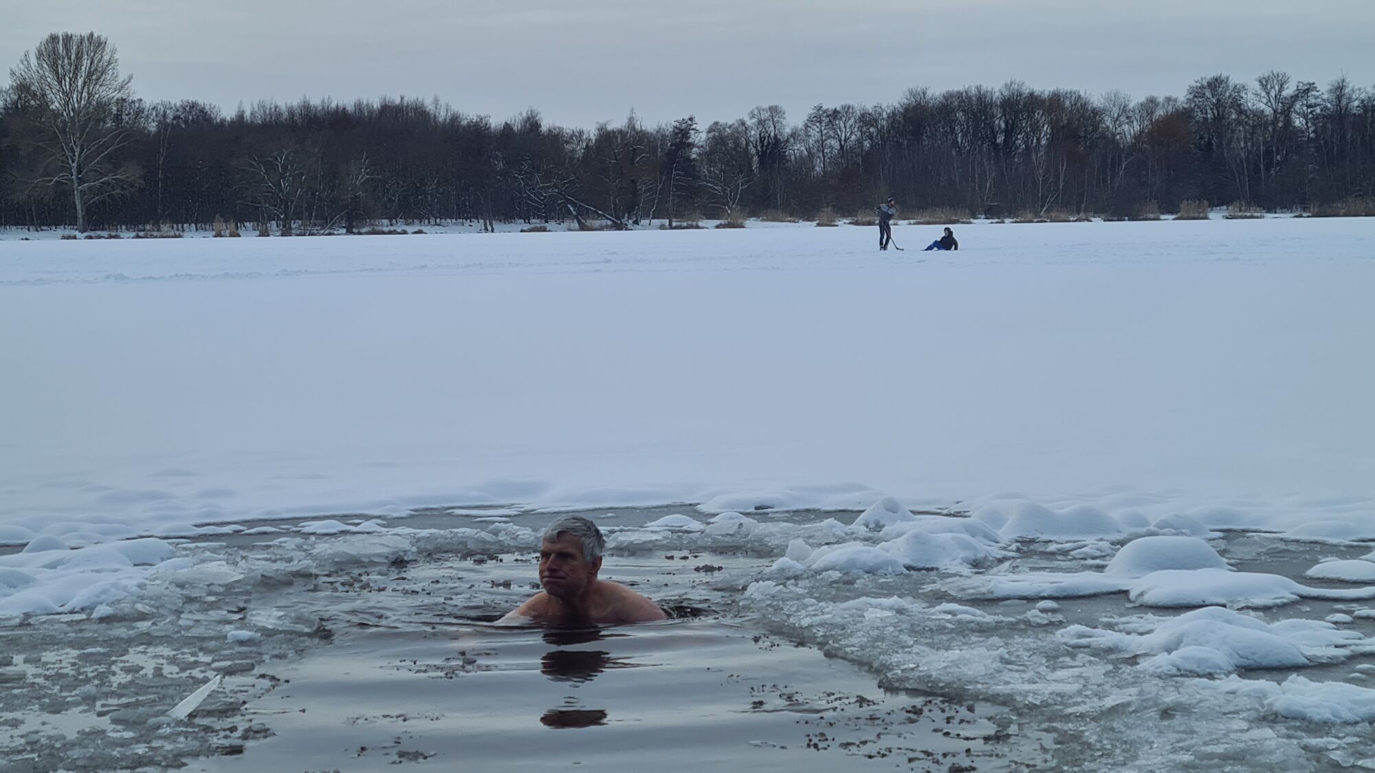 V Poděbradech zamrzlo Labe včetně Zdeňkova výlezu pod mostem, takže Tříkrálové plavání mělo správné načasování.